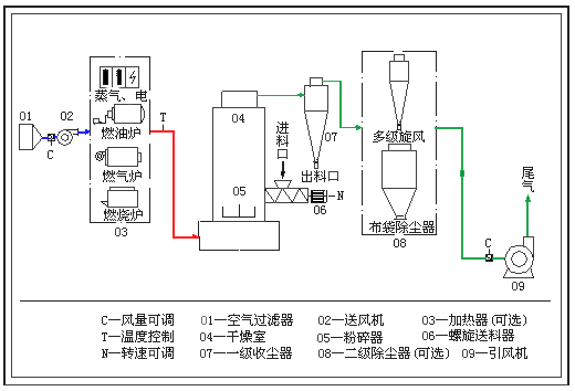 該系列設(shè)備是總結(jié)了流化床、熱破碎、旋流和分級技術(shù)的基礎(chǔ)上,開發(fā)、設(shè)計的一種熱效率高、適用范圍廣的新型干燥設(shè)備。